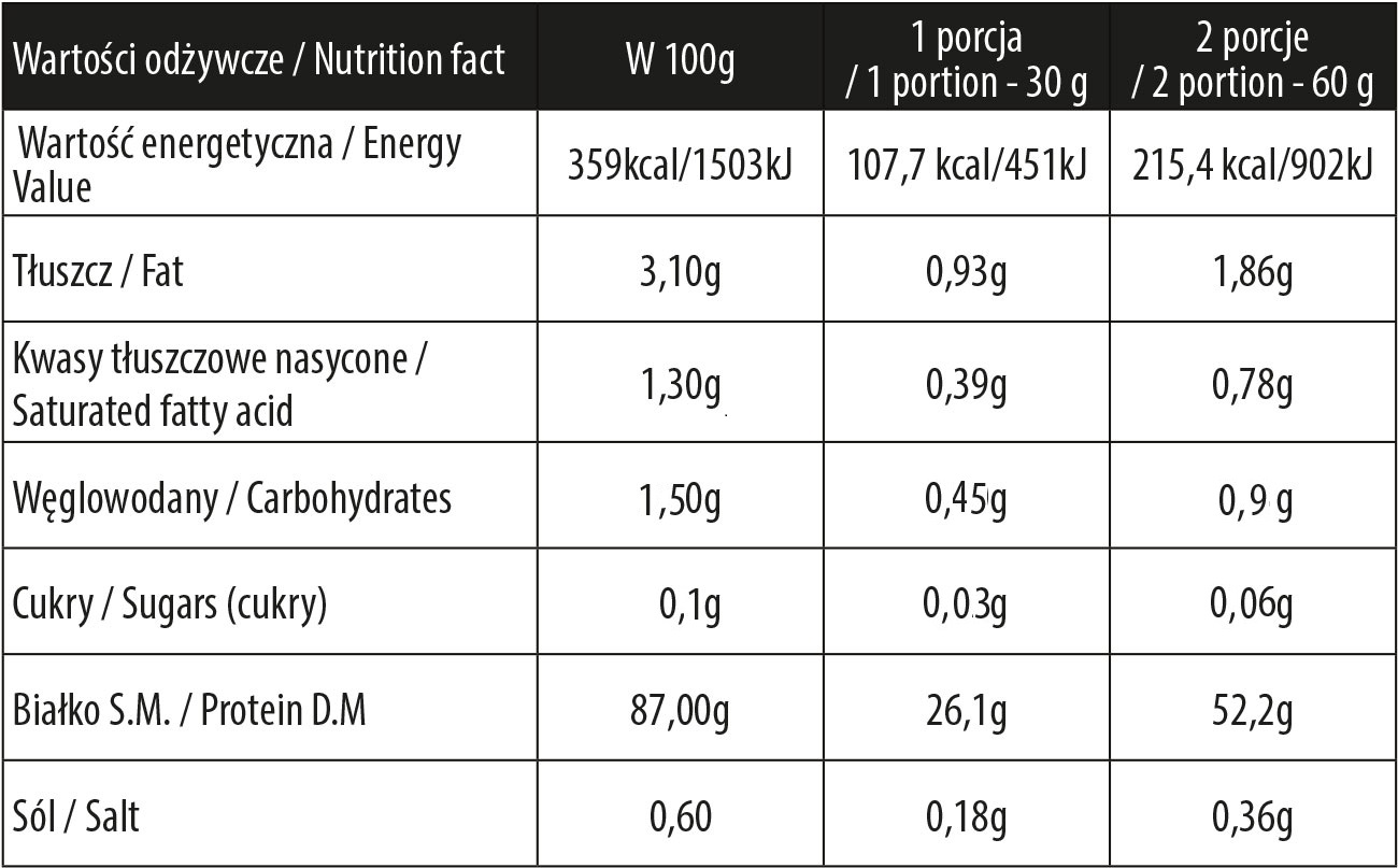 PROMAKER Gold ISOLATE to najwyższej jakości izolat białka serwatkowego, zawierający w składzie aż 87% protein. Doskonałe źródło pełnowartościowego białka zwierzęcego o pełnym aminogramie, będące doskonałym budulcem masy mięśniowej.